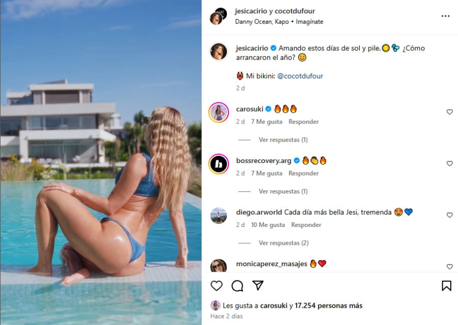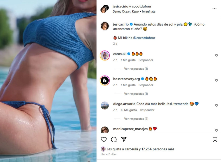 Jésica Cirio compartió con sus seguidores una serie de imágenes mostrando sus curvas y disfrutando de los primeros días de calor del 2025. Así, dejó en evidencia lo bien que la modelo se siente al inicio del año, posando con un traje de baño en dos piezas de tono azulado.