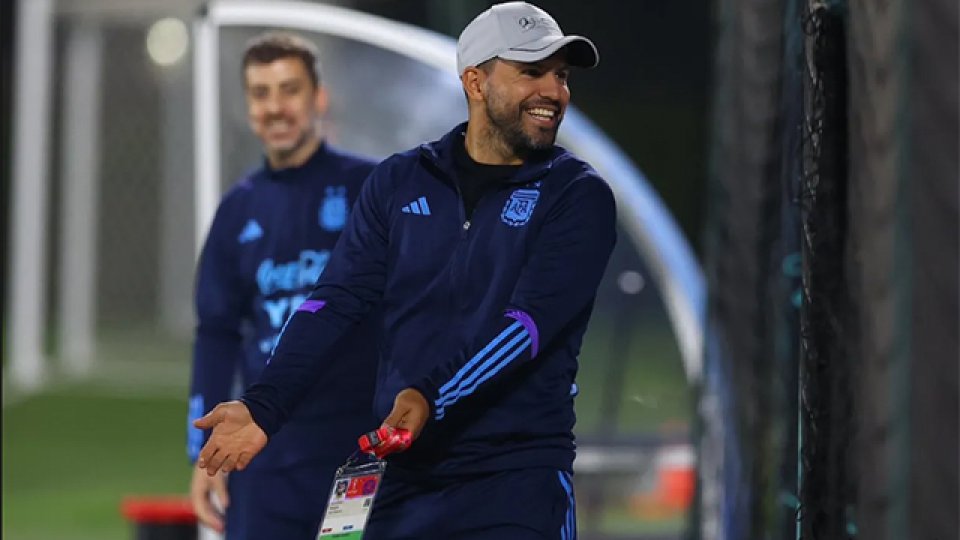 Sergio "Kun" Agüero, exdelantero del seleccionado argentino retirado justo hace un año, visitó hoy al plantel conducido por Lionel Scaloni en el primer entrenamiento de cara a la final del Mundial de Qatar 2022 que se disputará el próximo domingo ante Francia.