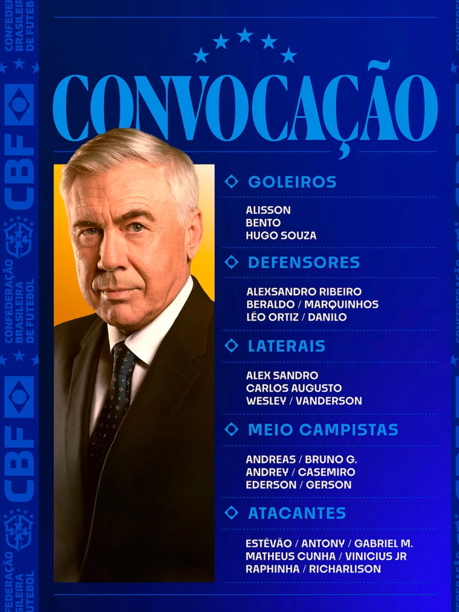 Otros de los nombres destacados que aparecen son el de Casemiro, pieza clave en el Real Madrid de Carletto y que no era convocado desde hace dos años, y Antony, quien también estuvo ausente en las últimas citaciones. “Joelinton, Rodrygo, Éderson, Militão también están de baja por lesión”, confirmó el flamante entrenador.