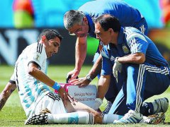 El mediocampista del seleccionado argentino Angel Di María sufrió una "leve" lesión en el músculo recto anterior del muslo derecho y sólo fue descartado para el duelo del próximo miércoles ante Holanda, en San Pablo, por una de las semifinales del Mundial.