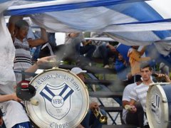 Un grupo de simpatizantes de la V azulada, respaldó al plantel y cuerpo técnico en la última práctica del equipo en suelo vialense, antes del viaje a Formosa dónde este miércoles frente a San Lorenzo por la Copa Argentina 2014-2015.