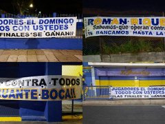 El estadio del Xeneize amaneció rodeado de mensajes de apoyo para Juan Román Riquelme, críticas a la prensa "anti Boca" y un pedido para el plantel. Los pasacalles aparecieron en las inmediaciones del Alberto J. Armando.