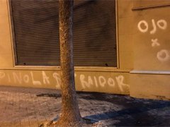 En la fachada de la Escuela Goëthe de Rosario, ubicada en el cruce de las calles España y Tucumán, un grupo de vándalos dejó escrito "Ojo x ojo" y "Pinola$ Traidor" mientras que además prendieron fuego neumáticos frente a la entrada de la institución.