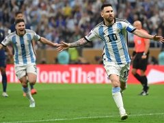 En este caso, se lo ve al rosarino levantando el trofeo, como sucedió el 18 de diciembre en el estadio Lusail de Qatar y con una marcada alegría en su rostro, en una altura aproximada de tres metros.