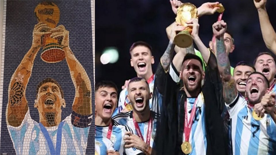 Apareció un nuevo mural de Lionel Messi con la Copa del Mundo.