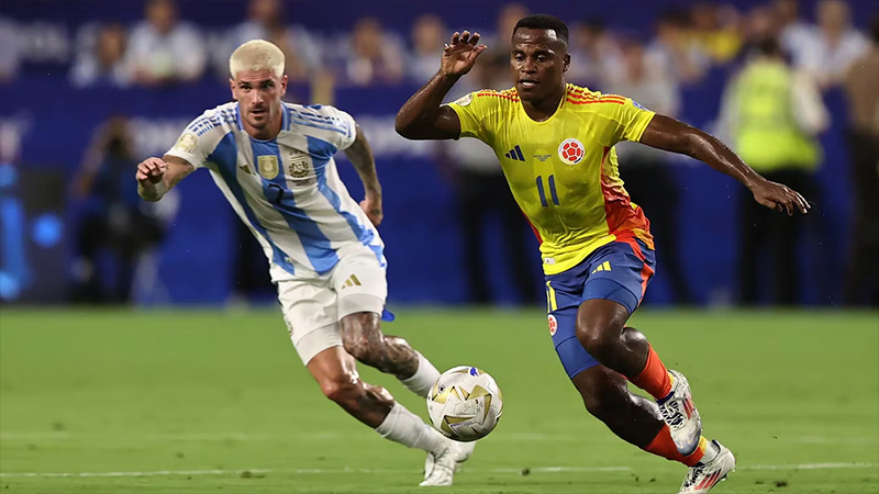 Colombia, más allá de juego vertical y alguna pincelada de James Rodríguez, no logró llegar a fondo y Dibu Martínez apenas tuvo trabajo por algún tiro desde afuera y un cabezazo.