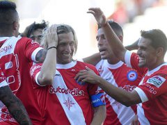 Con tantos del ex Patronato Machín y de Batallini, el Bicho, que contó con el regreso de Lucas Barrio, venció 2 a 0 al Santo sanjuanino, resultado que lo dejó en el octavo puesto y en zona de clasificación a las copas continentales.