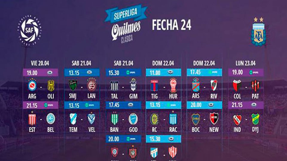 La vigésimo cuarta fecha de la Superliga llega con partidos muy interesantes que pueden definir el rumbo de las últimas cuatro jornadas del torneo argentino. Hoy jugarán: Argentinos - Olimpo (19); también Estudiantes - Belgrano (21.15)