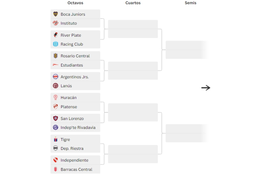 De esta manera, después de la fecha 16, cuando se termine la fase de liga, ya se conocerá el cuadro de octavos de final, instancia a la que clasificarán los ocho mejores de cada Zona. A partir de allí, el 1ro de la Zona A se cruzará con el 8vo de la B, el 2do con el 7mo, el 3ro con el 6to y así sucesivamente hasta llegar a la cifra de 16 partidos tipo playoffs.