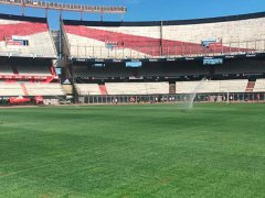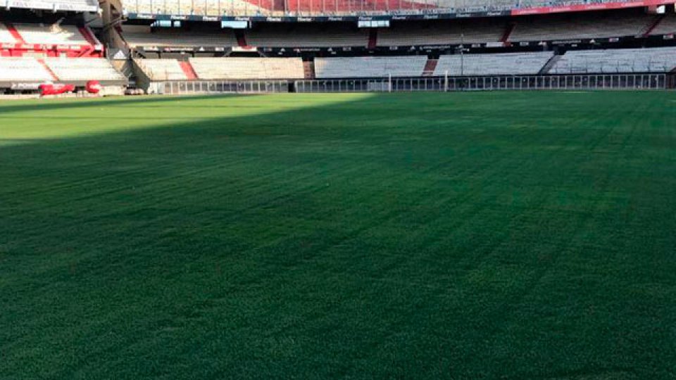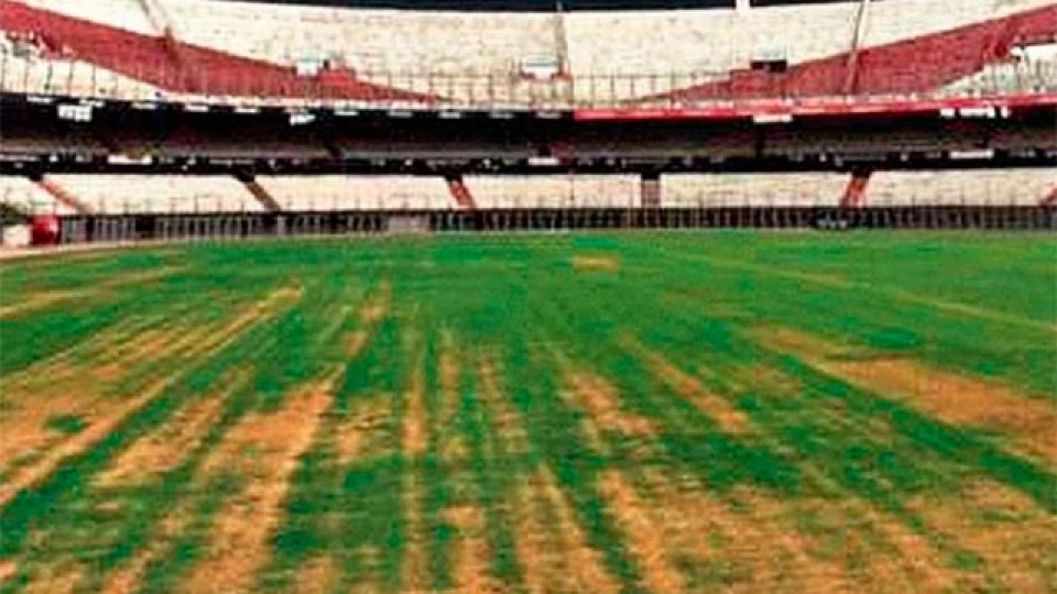 Los encargados de cuidar el campo de juego se equivocaron de producto fertilizante y mataron el pasto. En River trabajaron muy fuerte en estos días y ya se ve una gran mejoría.
