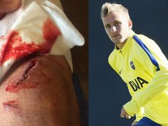 La durísima entrada tuvo lugar en el cotejo con carácter amistoso que jugaron ayer por la mañana el Xeneize y Nacional de Montevideo en el Complejo Pedro Pompilio, donde fue el cuadro visitante el que se impuso con comodidad 4 a 0 frente a los suplentes del equipo de Arruabarrena.
