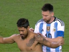 Un hincha entró al campo y le pidió a Messi que le firme la espalda.