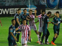 El partido había sido suspendido ayer por lluvia, pero el campo de juego lució normal y no influyó durante el cotejo. El equipo de Juan Manuel Azconzábal tuvo la iniciativa desde el arranque y manejó la pelota, pero no lograba lastimar la defensa del Tatengue. Hubo pocas llegadas en la primera mitad, y cuando llegaba el final Zampedri cabeceó un gran centro de Leonel Di Plácido y puso en ventaja al local.