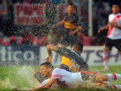 Fue 1-1 bajo un diluvio que complicó el juego. Magallán (PT 21m) y Pezzella (ST 33m) hicieron los goles. El Xeneize jugó 50 minutos con un hombre menos por la expulsión de Gago. También vio la roja Funes Mori y Mora erró un penal.