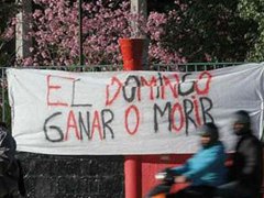 Los jugadores de Colón de Santa Fe fueron amenazados hoy a través de una bandera que apareció colgada en el frente del estadio, en la previa del clásico del domingo frente a Unión. "El domingo, ganar o morir", se podía leer.