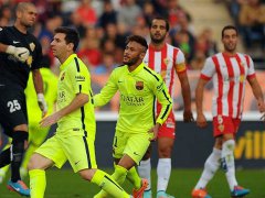 El equipo de Luis Enrique jugaba muy mal y perdía 1-0 ante Almería, pero los ingresos de Neymar y Suárez en el complemento le dieron más agresividad y lo ganó 2-1 tras dos asistencias del uruguayo. Messi no pudo marcar su gol N° 251 en Liga