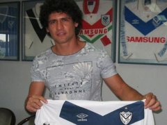 El mediocampista paraguayo posa con la casaca de Vélez.