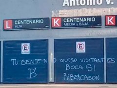 "Tu gente no quiso visitantes, Boca sí. Riber cagón", decía el mensaje que escribieron en el ingreso a la tribuna Centenario sobre la Avenida Figueroa Alcorta.