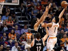 Rondae Hollis-Jefferson logró su mejor estadística de la campaña, con 20 puntos, y capturó 13 rebotes para que los Nets de Brooklyn consiguieran su primer triunfo como visitante de la temporada, al aplastar el sábado 122-104 a los Suns de Phoenix.