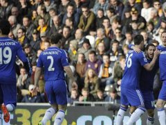 Los comandados por el excéntrico entrenador luso, comenzaron arriba con los tantos de Eden Hazard y Diego Costa (llegó a los 19 en la tabla de goleadores), pero luego aparecieron Ahmed Elmohamady y Abel Hernández para nivelar el marcador; lo que hubiese sido un verdadero mazazo. Sin embargo, a poco del final, Loïc Rémy estampó el 3 a 2 definitivo y mantuvo a los de londres como cómodos punteros, aventajando por seis a los "Ciudadanos" y por siete a los "Gunners".