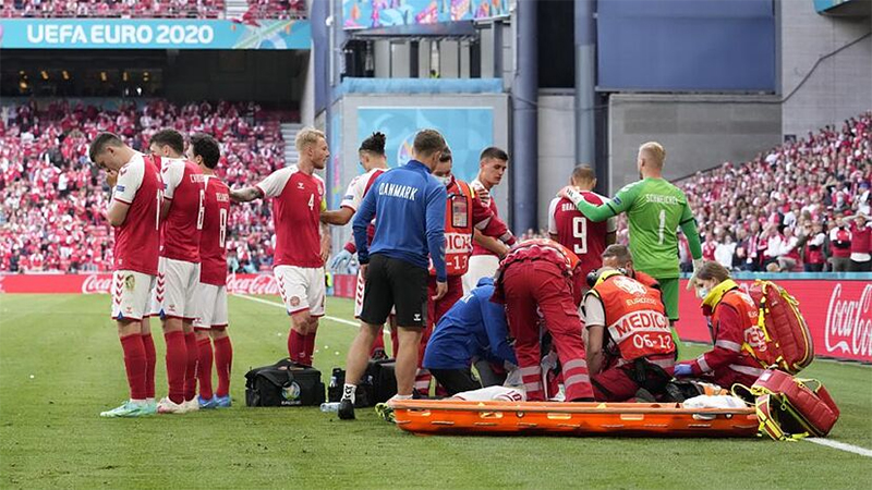 El 12 de junio de 2021, durante un partido de la Eurocopa contra Finlandia, Eriksen colapsó cerca de un lateral del campo, sufriendo un paro cardíaco. Fue reanimado en el terreno de juego gracias a la rápida intervención de los servicios médicos y el uso de un desfibrilador. Tras su recuperación inicial, fue trasladado al hospital donde se recuperó completamente.