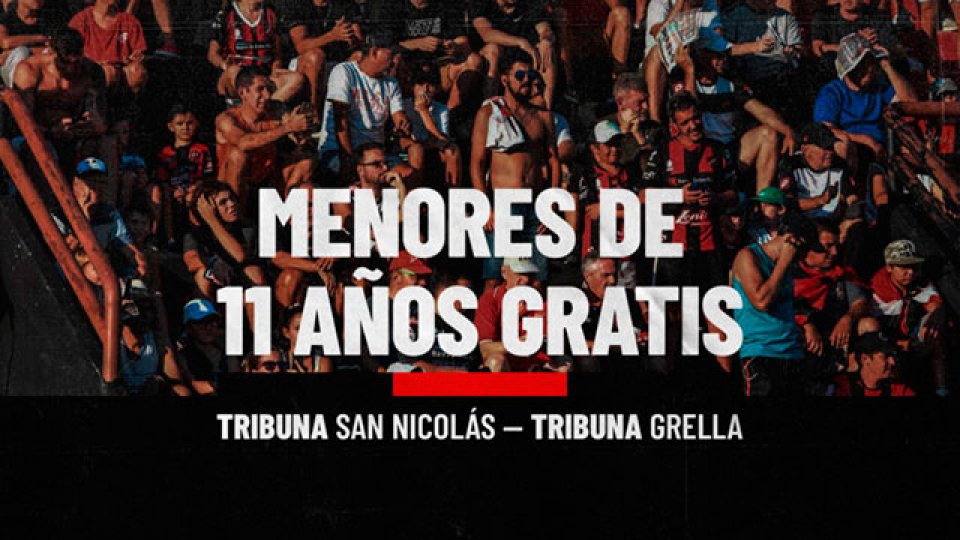Este viernes, por decisión de Comisión Directiva, los menores de 11 años ingresarán gratis a las tribunas San Nicolás y Grella, presentando el DNI en los accesos.