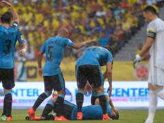 Los Cafeteros comenzaron ganando en Barranquilla con el gol de Aguilar, luego la Celeste dio vuelta el marcador gracias a Rodríguez y Suárez, y parecía que se llevaba el triunfo, hasta que Mina, a cinco del final, puso el 2 a 2 definitivo.
