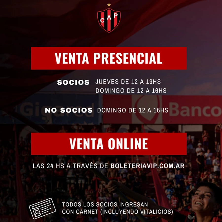 El Club Atlético Patronato informó que desde este jueves comenzó la venta de entradas para el encuentro del próximo domingo, a partir de las 16 horas en el estadio Presbítero Bartolomé Grella, ante Güemes de Santiago del Estero, por la jornada 19 de la zona A, por el campeonato de la Primera Nacional.