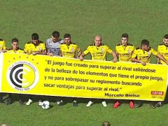 En la previa al duelo ante Riestra, el plantel del Cartero salió al campo de juego portando un cartel con una frase de Marcelo Bielsa repudiando la trampa en el deporte. Al final del encuentro, volvieron a mostrar el mensaje entre aplausos.