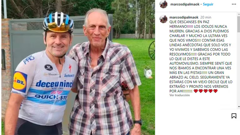 Marcos Di Palma, amigo cercano y rival en las pistas, expresó su pesar con emotivas palabras: "Que descanses en paz hermano! Los ídolos nunca mueren. Gracias a Dios pudimos charlar y mucho la última vez que nos vimos. Contar esas lindas anécdotas que sólo vos y yo vivimos y sabemos cómo las resolvimos. Gracias por todo lo que le diste a este automovilismo".