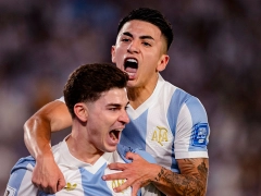 Julián Álvarez recibió un gran pase en profundidad de Thiago Almada, encaró a Brayan Cortés y convirtió el primer gol para la Selección Argentina, que juega con un equipo inédito.
