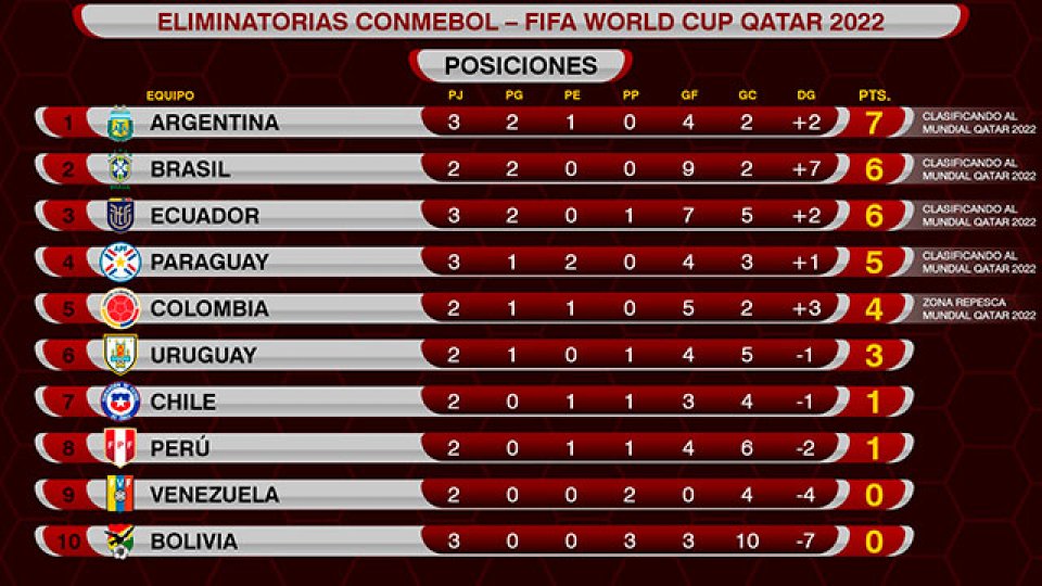 Es que el equipo de Lionel Scaloni quedó con siete unidades en tres partidos, mientras que los de Tité tienen cinco puntos y mañana se enfrentan a la Vinotinto. Así, la Canarinha tiene la chance de superar a la Albiceleste. Otro equipo que puede aprovechar los dos puntos que Argentina dejó en el camino es Colombia, que con una victoria también se ubicará con siete puntos.