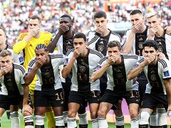 La Selección alemana posó ante los fotógrafos tapándose la boca en la previa del partido ante Japón, en el inicio del grupo E del Mundial, en protestas por la prohibición de la FIFA al uso de la cinta de capitán con el lema One Love contra la discriminación LGTBIQ+ en Qatar.