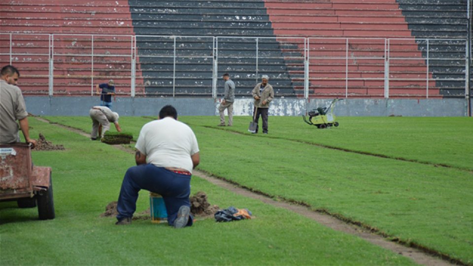 Hubo trabajos de arena con respecto a la nivelación y se hizo una nueva resiembra. <b>Aseguran que el césped está tupido y, más allá que no pueda verse bien estéticamente, afirman un buen desplazamiento de la pelota.</b> También se verá la nueva iluminación con las cuatro nuevas torres.