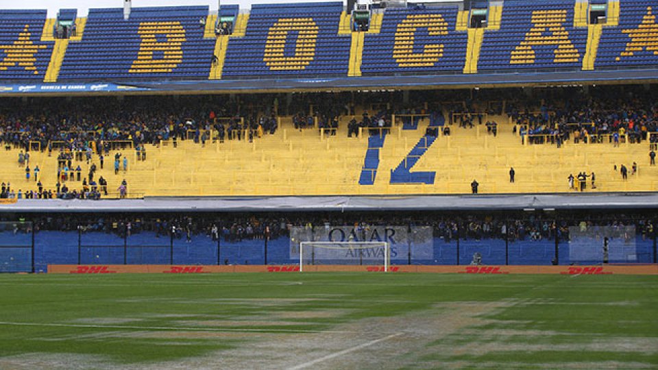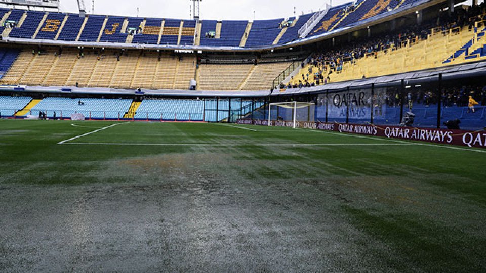 El campo de juego de la Bombonera sufrió las consecuencias del intenso temporal. Hoy se esperan más lluvias. Esta mañana, a las 11, se anunciará si la ida del Superclásico se disputa esta tarde a las 16 o si se aplaza para el sábado 17.