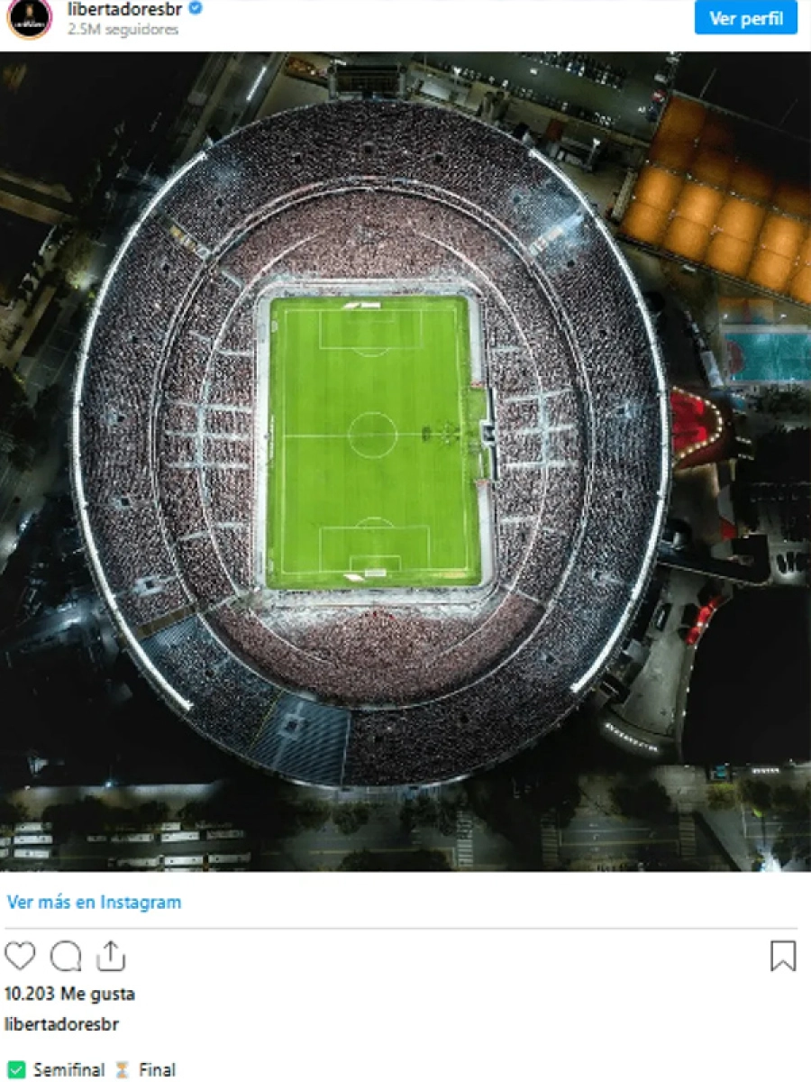 La máxima entidad del fútbol sudamericano compartió imágenes del estadio de River Plate en sus redes sociales y reafirmó que la sede para la definición por el título continental no se modificará.