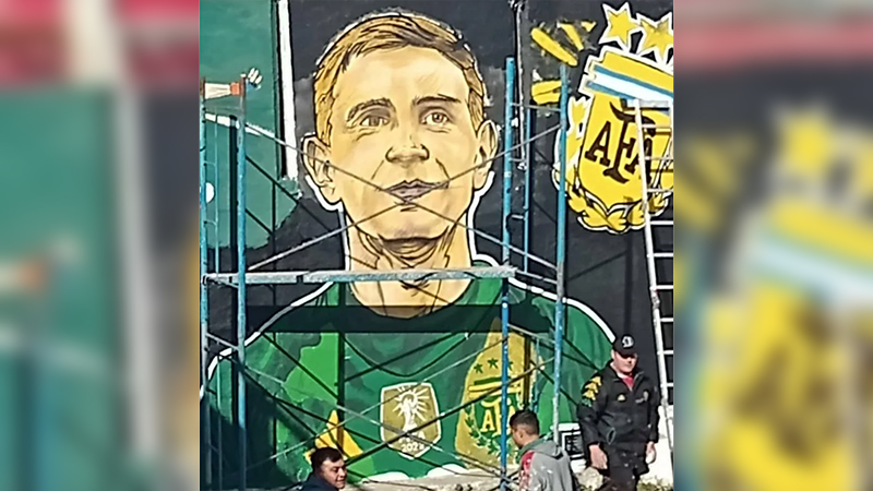 Además, artistas locales pintaron un mural, ubicado en Escollera Norte, que retrata la emoción en el rostro del arquero argentino tras la consagración de la Copa América 2024, en Estados Unidos. Si bien falta que se finalice la obra, la misma ya cuenta con la cara de Martínez, en primer plano y el escudo de Argentina a la derecha.