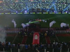 Un show distinto, que se puede ver en pocas partes del mundo. Luces, fuegos artificiales, banderas y globos azules y amarillo. Y, sumado a todo esto, el calor de los miles y miles de hinchas que colmaron el Estadio Mario Alberto Kempes de Córdoba.