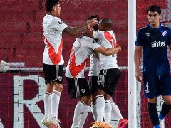 El complemento no contó con mucha acción pero River logró salir airoso ante un rival sin resto futbolístico: nunca pudo retomar el buen ritmo que había impuesto en la etapa anterior. Rochet volvió a frustrar a Borré en la primera, después también tuvo una buena Suárez y, finalmente, Mathías Laborda sí cometió un penal inapelable con una mano ante una irrupción de Nicolás De la Cruz. A los 21, Gonzalo Montiel lo ejecutó a la izquierda del arquero y le abrió el arco al anfitrión.