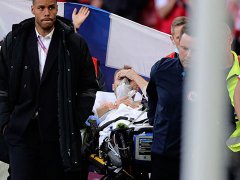 Sus compañeros Martin Braithwaite y Thomas Delaney acudieron a asistirle, entre desesperadas peticiones de asistencia médica por parte de Delaney. La federación danesa llevó tranquilidad a las 14.40, diciendo en su twiter oficial: "Está bien, está consciente y le harán estudios más profundos". Y la UEFA también informó: "Eriksen ha sido trasladado al hospital y se ha estabilizado".