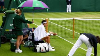 El segundo día de Wimbledon arrancó con un cielo gris y chaparrones sobre el All England que puso en pausa varios partidos, entre ellos el del argentino Tomás Etcheverry (30°) y el italiano Luca Nardi (75°), pero minutos después de su recaudación, el platense cerró el segundo set para poner el marcador 6-1, 6-4 a su favor.