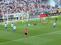 En las imágenes se observa cómo el defensor, durante un avance del Madrid, mira repetidamente a Ronaldo, quien corría por detrás, y cuando le llega el centro desde la izquierda, levanta llamativamente el pie (aun sabiendo que estaba CR7), y entonces la pelota le queda el delantero portugués.