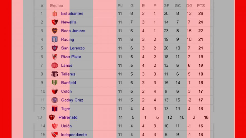 Patronato sigue su firme caminar en la Primera categoría del fútbol argentino con números alentadores. <b>Elonce TV pudo saber que el "Negro" obtuvo cinco derrotas, y la misma cantidad de triunfos, además de un empate. Así, Patronato cosechó 16 puntos para quedar en el primer grupo de equipos que están por encima de la mitad de la tabla</b>.