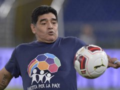 Diego Armando Maradona llegó ayer a Bogotá, donde jugará “el partido por la Paz” junto a ex estrellas del fútbol local, como Faustina Asprilla y Fredy Rincón, y participará de un evento por la paz.