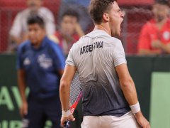 Por el segundo punto de la Zona Americana correspondiente a la Copa Davis que protagonizan Argentina y Chile en el estadio Aldo Cantoni de San Juan, el Peque derrotó 7-6, 6-7 y 6-2 a Christian Garín, y ahora la serie se encuera 1 a 1.