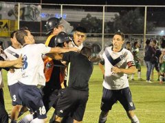 La agresión de los jkugadores de Sportivo Rivadavia al árbitro Facundo Elgart.
