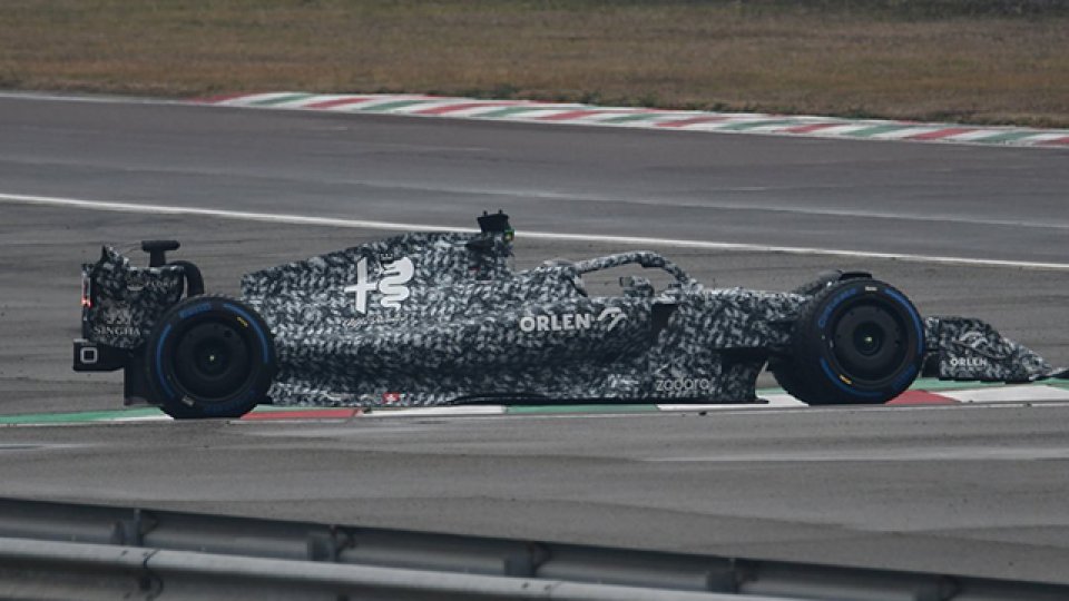 El automóvil en cuestión fue el C42 de la escudería suiza Alfa Romeo, que saltó a la pista cubierto con un camuflaje especial ya que todavía no presentó su nuevo diseño y no quisieron revelarlo durante la sesión de éste miércoles.