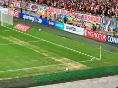 El estado del campo de juego fue tema de conversación tanto en las tribunas como en las redes sociales, con un disgusto generalizado al ver cómo se levantaba arena en el sector más perjudicado y preocupación teniendo en cuenta que en cuestión de horas ese mismo césped será el escenario de un superclásico.