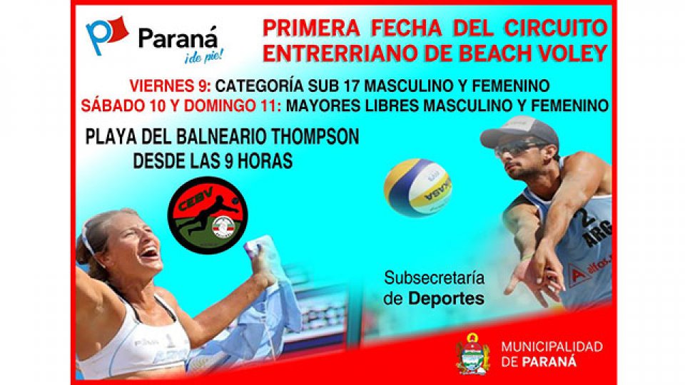 El Circuito Provincial de Beach Voley iniciará este fin de semana una nueva temporada y las playas del Thompson, en Paraná, será sede de los primeros remates.