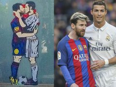 El curioso graffiti de Lionel Messi y Cristiano Ronaldo besándose